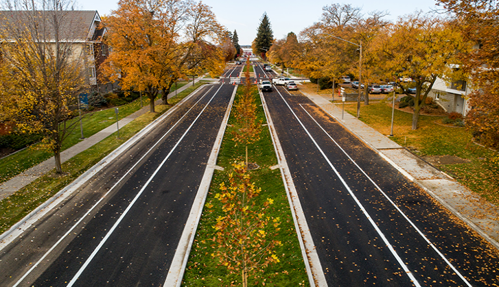 Several GU civil engineering senior design classes, led by Associate Professor Sue Niezgoda in collaboration with the city of Spokane, contributed to environmentally sustainable solutions for the street’s stormwater management. Those solutions include porous asphalt and concrete roadway sections and bio-retention swales in the center of the avenue that will filter and treat stormwater before it reaches the Spokane River and the region’s estimated 10-trillion-gallon aquifer.